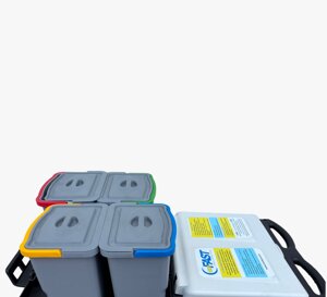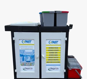 Bag holder: Sliding bag holder slider to adjust the opening and make it easier to collect waste/exhausted disposable cloths. Color-coded bag-holding slider for using double waste/exhausted single-use cloths collection bags. Lid-Light for execution of work plans and communication reports. Bag-cover doors for cart use in any condition.